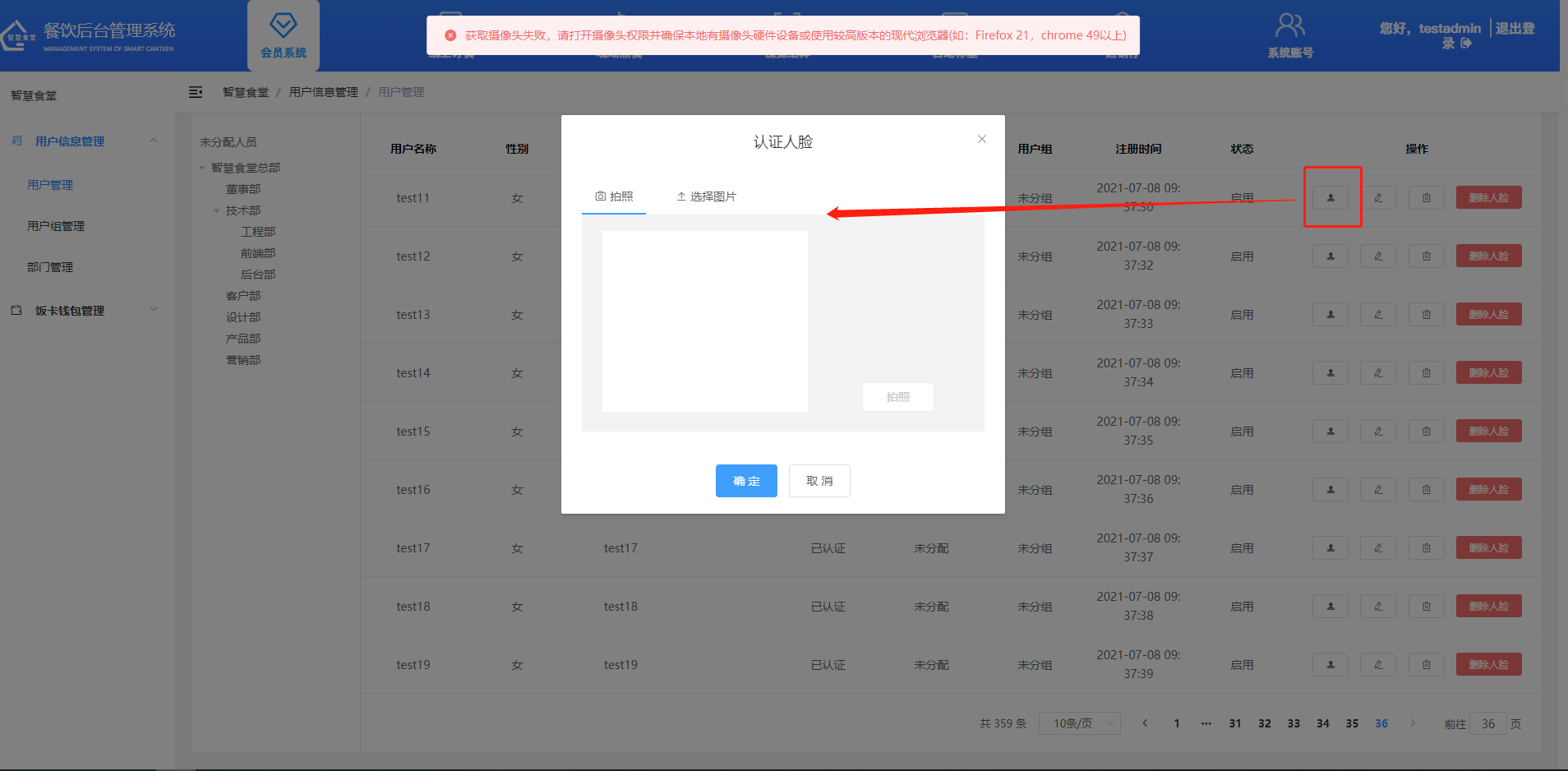 ④點擊右側操作人臉小圖標進行人臉認證,方便系統使用人臉識別功能,可進行批量注冊人臉;