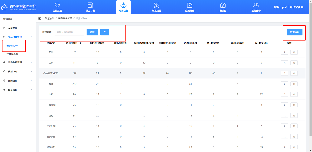 ①點擊“新增原料”按鈕,輸入原料名稱進行添加。