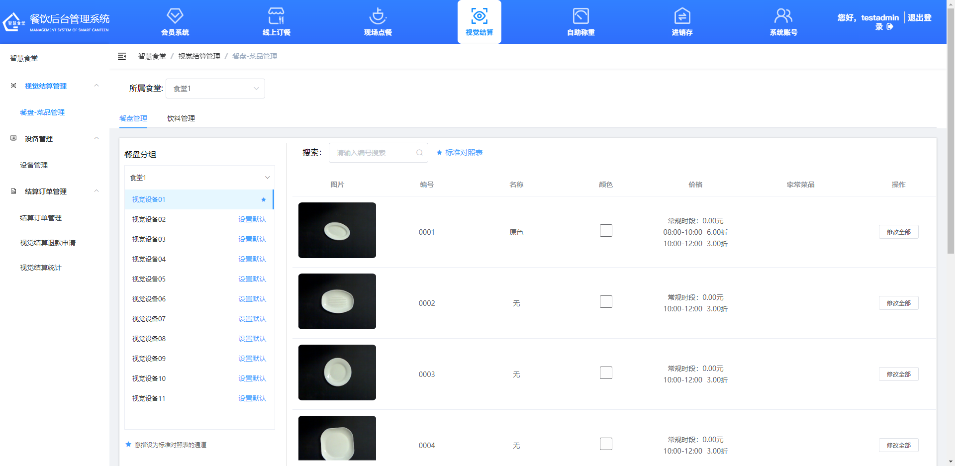 ①點擊“修改全部”按鈕可對餐盤的名稱、價格、時段價格、常用菜品進行編輯。