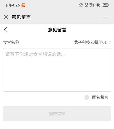 ①點擊食堂名稱,可選擇要留言的食堂