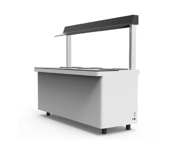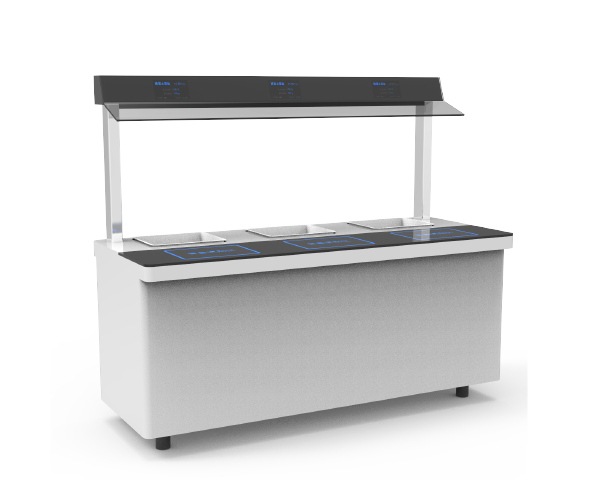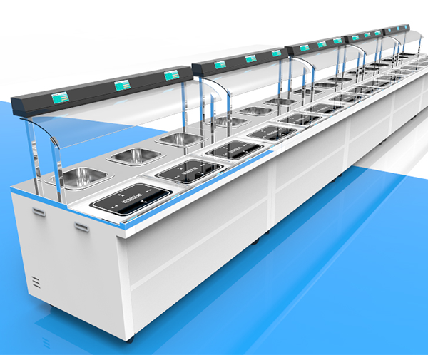 智能黑科技-無感智能稱重臺,采用先進科學的一體化設計,集成了保溫菜盤、電子稱、感應器、顯示屏等多個設備。系統(tǒng)自動計算夾取菜品重量,實現(xiàn)無感快速結算和精確取餐。