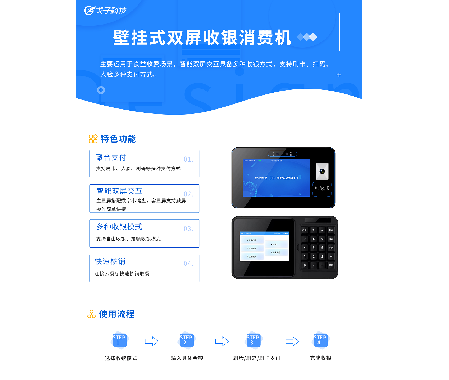 戈子科技壁掛式點餐機有效利用自助點餐系統搭合理搭配叫號取餐系統,人臉收銀等設備硬件,無縫整合智慧餐廳的前端硬件和軟件,后廚系統,實現對餐廳的集成化智能管理。在提高用戶點餐訂購效率和餐廳管理的同時提升顧客整體點餐體驗與餐廳檔次。